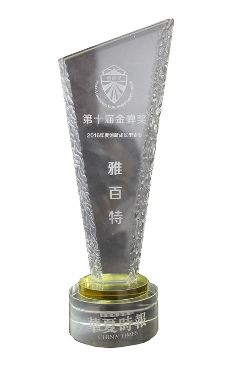 “金蟬獎(jiǎng)”每年歲末盤點(diǎn)年度最具實(shí)力的金融機(jī)構(gòu),以創(chuàng)造財(cái)富為核心標(biāo)準(zhǔn),在業(yè)內(nèi)素有“財(cái)經(jīng)奧斯卡”之稱。雅百特憑借2016年優(yōu)秀的創(chuàng)新能力和快速發(fā)展獲得“2016年度創(chuàng)新成長(zhǎng)型企業(yè)”榮譽(yù)稱號(hào)。