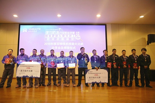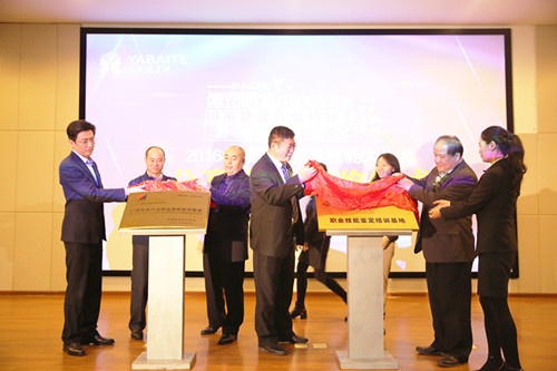活動(dòng)最后,在陣陣鞭炮聲中,各位領(lǐng)導(dǎo)和雅百特員工共同見證了“建筑防水行業(yè)職業(yè)技能培訓(xùn)基地”、“國(guó)家建材行業(yè)特種工職業(yè)技能鑒定培訓(xùn)基地”的掛牌儀式。自此,全國(guó)首家“建筑防水行業(yè)職業(yè)技能培訓(xùn)基地”、“國(guó)家建材行業(yè)特種工職業(yè)技能鑒定培訓(xùn)基地”正式掛牌成立。