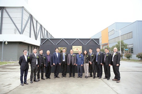 出席領(lǐng)導(dǎo)在簽到處合影(中為羨永彪,右一為瞿劍臣,右二為朱慶華,右三為李志輝,右四為李冬明,右五為尚華勝;左一為張庭,左二為毛雪松、左三為黃進(jìn),左四為郭宇飛,左五為王瀾)