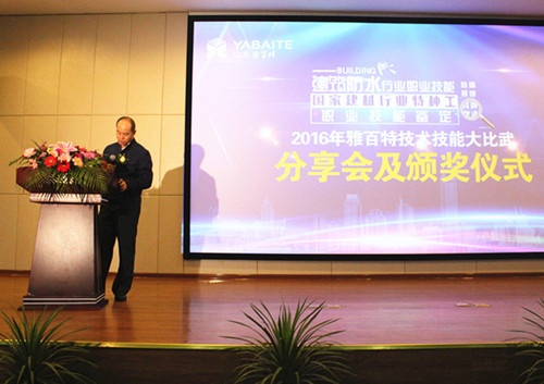 雅百特由張庭代表董事長(zhǎng)陸永發(fā)言。他表示,感謝行業(yè)的信任和支持。雅百特一直以來(lái)以推動(dòng)行業(yè)發(fā)展為責(zé),此次“建筑防水行業(yè)職業(yè)技能培訓(xùn)基地”、“國(guó)家建材行業(yè)特種工職業(yè)技能鑒定培訓(xùn)基地”建立,將不遺余力加強(qiáng)培訓(xùn)隊(duì)伍建設(shè),為行業(yè)和社會(huì)培養(yǎng)真實(shí)掌握知識(shí)技能及技術(shù)的人才,逐步建立起專業(yè)化職業(yè)化建筑防水隊(duì)伍,促進(jìn)行業(yè)有序健康發(fā)展和產(chǎn)能升級(jí)。