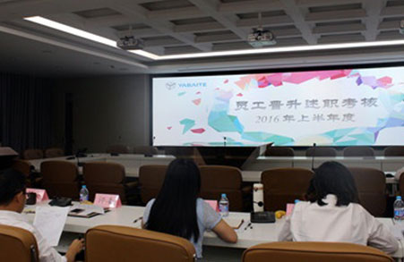 6月20日,雅百特2016年上半年度員工晉升述職考核大會(huì)在總部會(huì)議室舉行。雅百特董事、總工陳建輝,董事、副總經(jīng)理李冬明,董事、財(cái)務(wù)總監(jiān)顧彤莉,副總經(jīng)理、總工張庭,副總經(jīng)理、工程部總監(jiān)李志輝,采購總監(jiān)李洪梅及工程部大區(qū)經(jīng)理匡建偉作為評(píng)委出席會(huì)議。